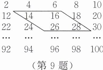 9. 如图,下列数阵是由 50 个偶数排成的。