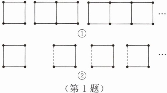 [问题提出]如图①,用火柴棒搭正方形,我们准备探究正方形个数与所需火柴棒的根数之间的关系。