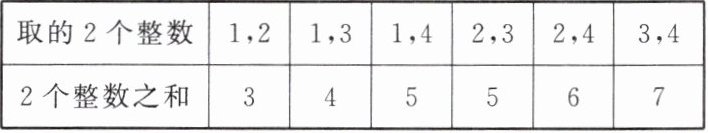 (2)从$1$,$2$,$3$,$4这4个整数中任取2$个整数,这$2$个整数之和共有多少种不同的结果?列出表$2$: