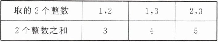 如表$1$,所取的$2个整数之和可能是3$,$4$,$5$,它们是从$3到5$的连续整数,其中最小是$3$,最大是$5$,所以共有$3$种不同的结果。