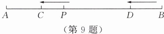 9. 【综合与实践】如图,$ P $ 是线段 $ AB $ 上一点,$ AB = 18 \, cm $,$ C $,$ D $ 两个动点同时分别从点 $ P $,$ B $ 出发沿射线 $ BA $ 向左运动,当一点到达点 $ A $ 处时即都停止运动。