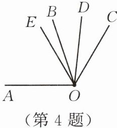 4. 如图,$∠AOB:∠BOC= 3:2$,$OD是∠BOC$的平分线,$OE是∠AOC$的平分线,$∠BOE= 12^{\circ}$。