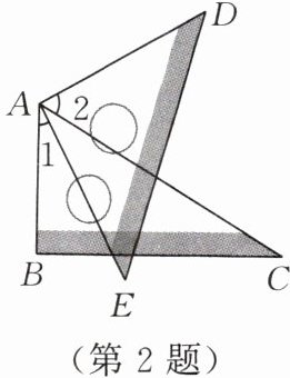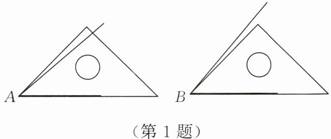 1. 如图,由于没有量角器,小明只能用三角尺比较$∠A和∠B$的大小。根据图形,$∠A和∠B$的数量关系是(