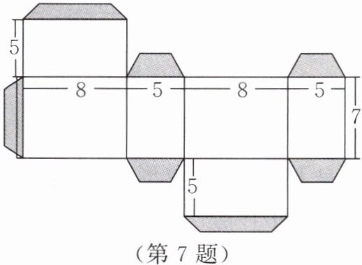 7. 【数学应用】某班数学活动小组的同学用纸板制作长方体包装盒,其表面展开图和相关尺寸如图,图中阴影部分为内部粘贴角料。(单位:cm)