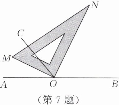 7. 如图,把三角尺$MON的直角顶点O放在直线AB$上,射线$OM平分∠AOC$。