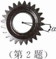 2. 【数学应用】如图,一个齿轮有24个齿,每相邻两齿中心线间的夹角都相等,则 $ \angle \alpha $ 的度数为(