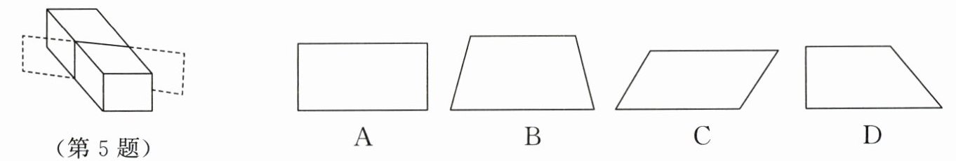 5. 如图,将一块长方体木料沿虚线切割,截成两段,截面图是(