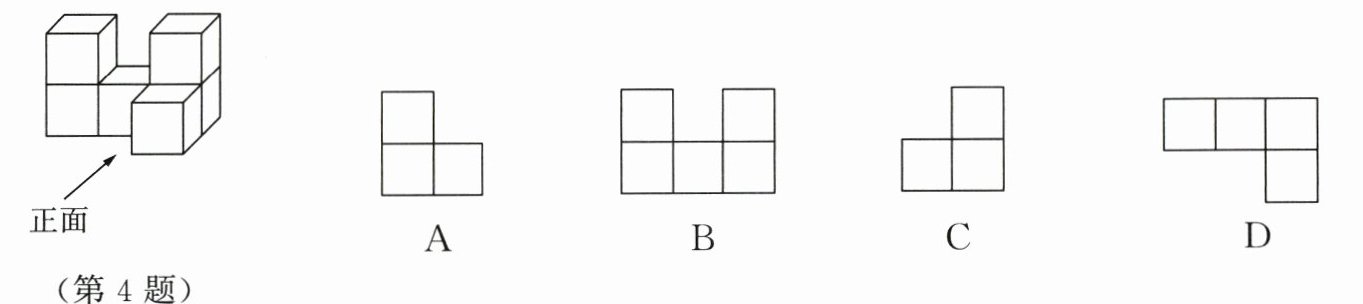 4. 下图是由完全相同的 6 个小立方块搭成的几何体,该几何体从左面看到的形状为(