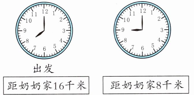 (1)16 - 8 = 8(千米) 9时 - 8时 = 1小时