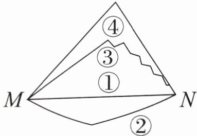 (2) 如图,由M到N有①②③④共4条路线可走,最短的路线选①的理由是(