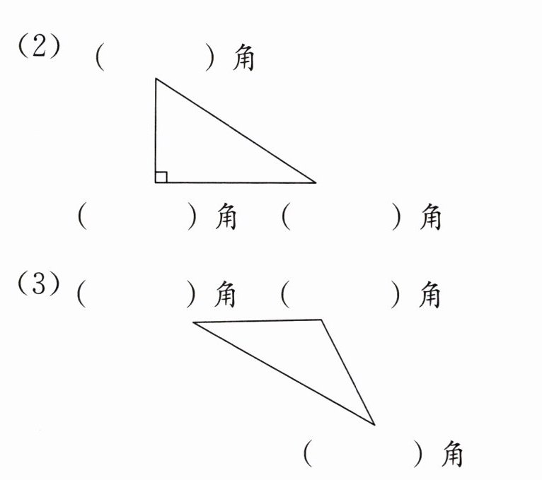 4. 找出下面三角形中的直角、锐角和钝角。你有什么发现?