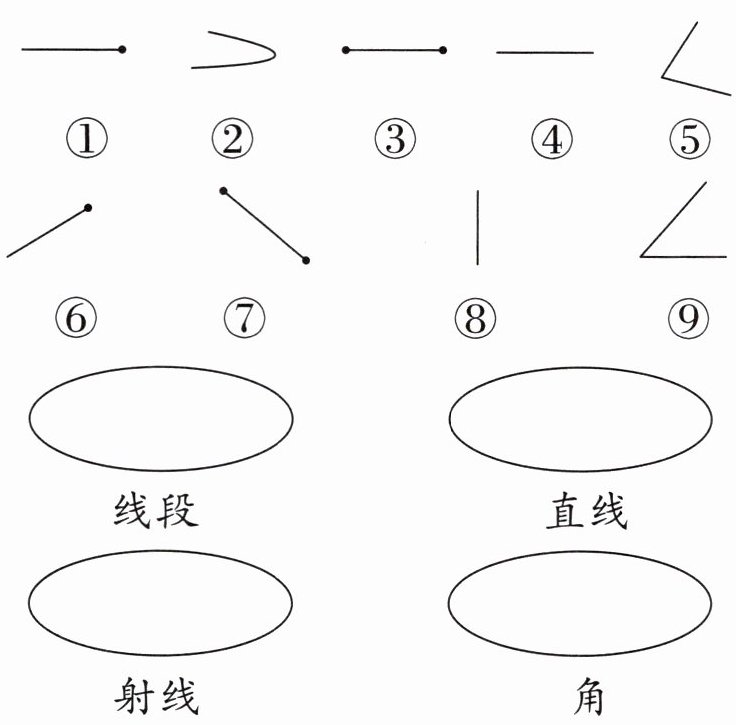 1. 把下面图形的序号填入相应的圈中。