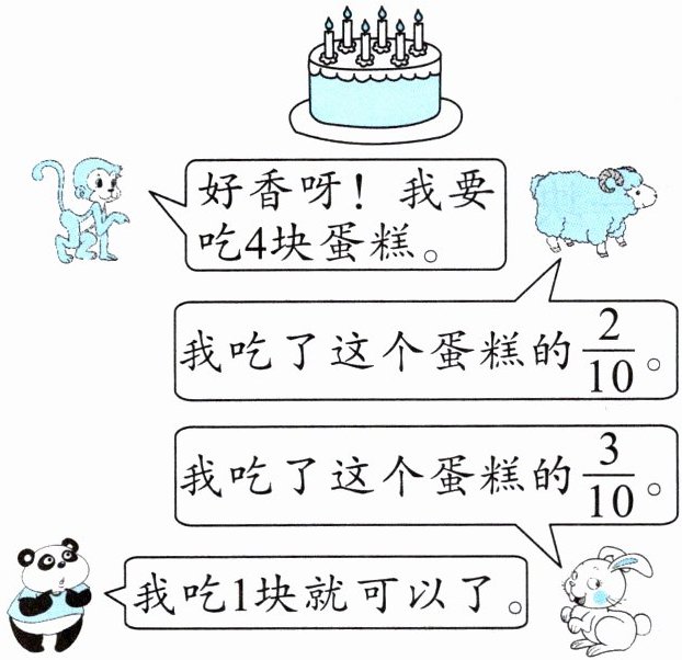 4. 大熊猫过生日,它的小伙伴们买来了一个大蛋糕,平均分成了10块。