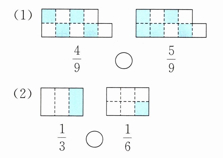 (1)$\frac{3}{6}$ $\frac{5}{6}$ $\frac{3}{6} < \frac{5}{6}$