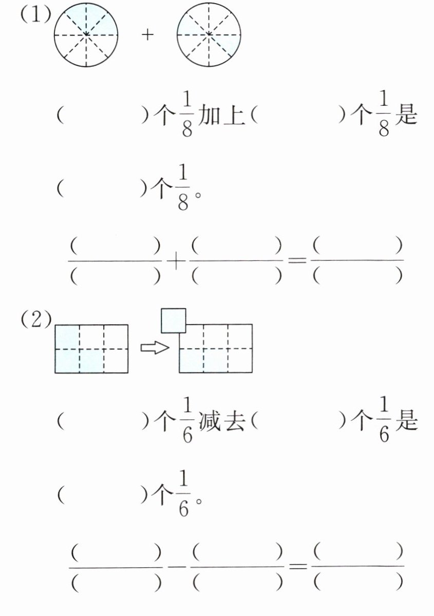 7 个$\dfrac{1}{8}$减去 5 个$\dfrac{1}{8}$是(