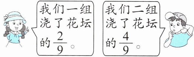 (1)$\frac{2}{9}+\frac{4}{9}=\frac{6}{9}$