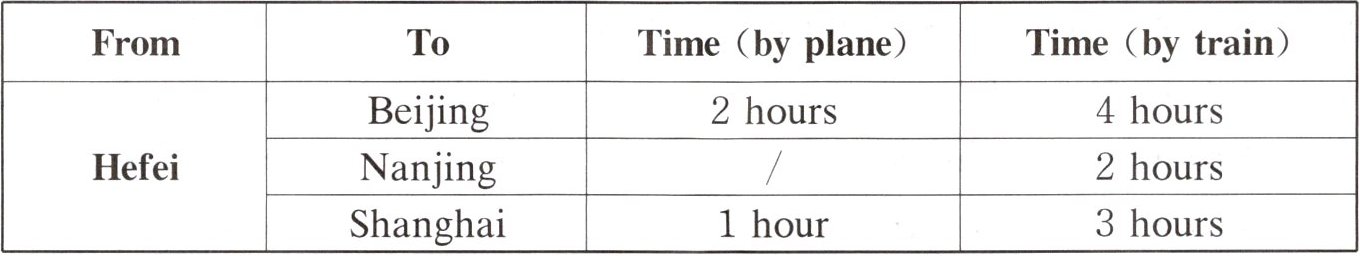 4) How long does it take to get to Shanghai from Hefei by plane?