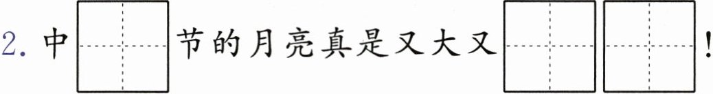 2. 中$\begin{array}{|c|} \hline qiū \\ \hline \end{array}\\ \hline 节的月亮真是又大又\begin{array}{|c|} \hline yuán \\ \hline \end{array}\\ \hline $$\begin{array}{|c|} \hline a \\ \hline \end{array}\\ \hline $!