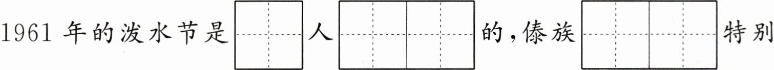 1961年的泼水节是$\begin{matrix} lìng \\ □ □ \end{matrix}\\ □ □ 人\begin{matrix} nán wàng \\ □ □ □ □ \end{matrix}\\ □ □ □ □ $的,傣族$\begin{matrix} rén mín \\ □ □ □ □ \end{matrix}\\ □ □ □ □ $特别高兴,因为敬爱的周恩来$\begin{matrix} zǒng lǐ \\ □ □ □ □ \end{matrix}\\ □ □ □ □ $和他们一起过泼水节。