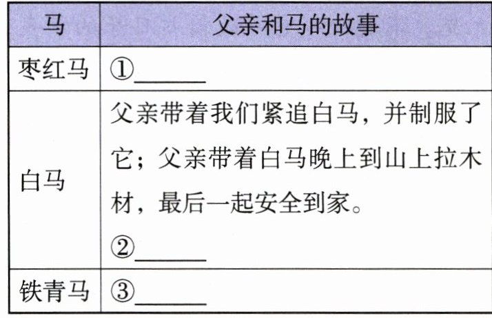 13.父亲驯服枣红马 白马去世后,父亲不舍得卖了它 父亲把铁青马收拾得服服帖帖;父亲遇险,被铁青马救回了家