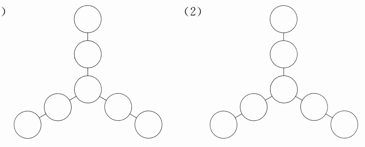 1. 按要求把1~7各数分别填入下面各图的〇里。