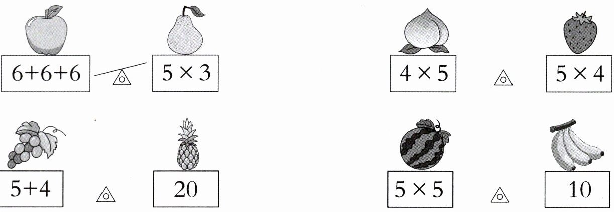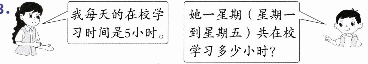 1. 3×5=15(人) 2. 5×3=15(个) 3. 5×5=25(小时)