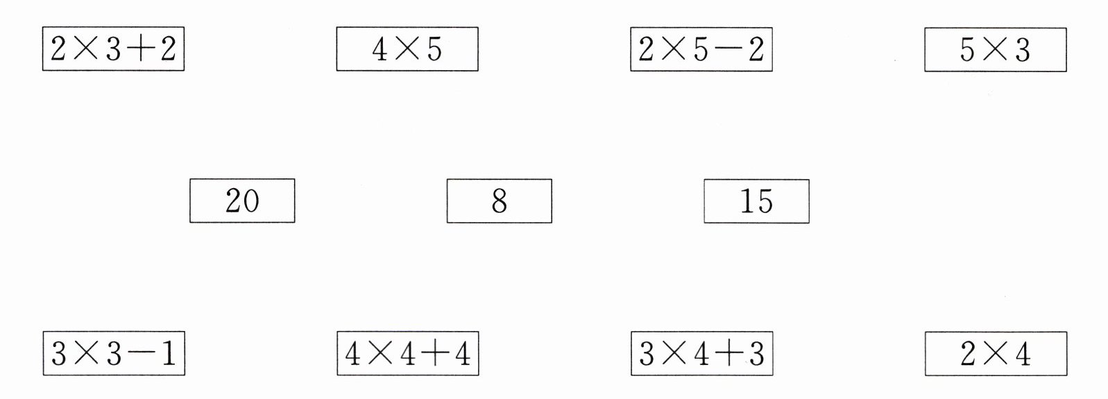 2×3+2 4×5 2×5-2 5×3 20 8 15 3×3-1 4×4+4 3×4+3 2×4