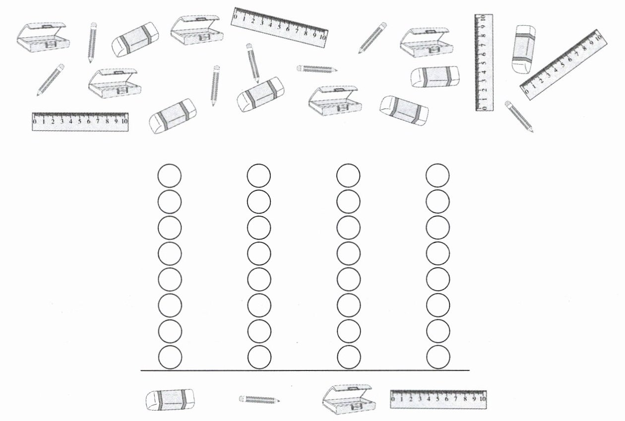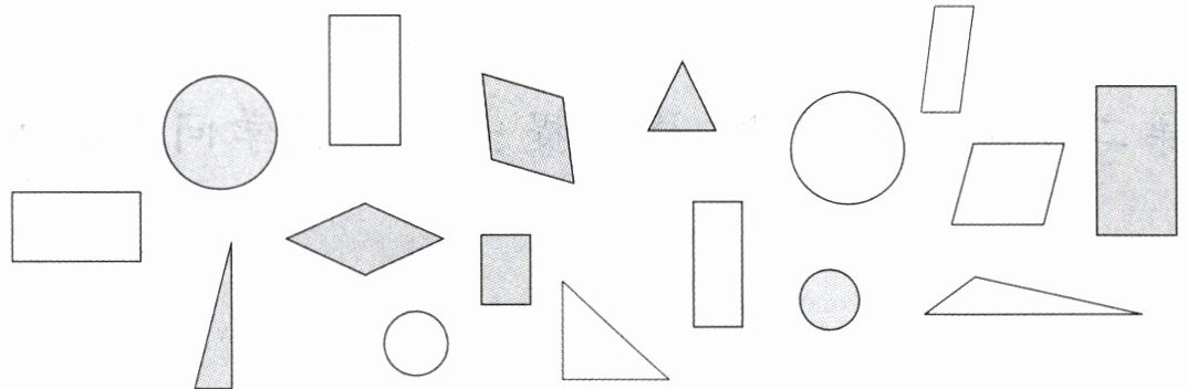 1. 先按图形的颜色分类,再把结果记录在下表中。