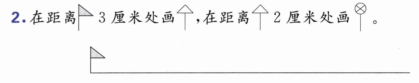 从箭头右端量出2厘米处画圆圈带叉符号(图略)。