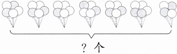 2. 算式 $7 + 7 + 7 + 7 + 4 + 3$,可以改写成(