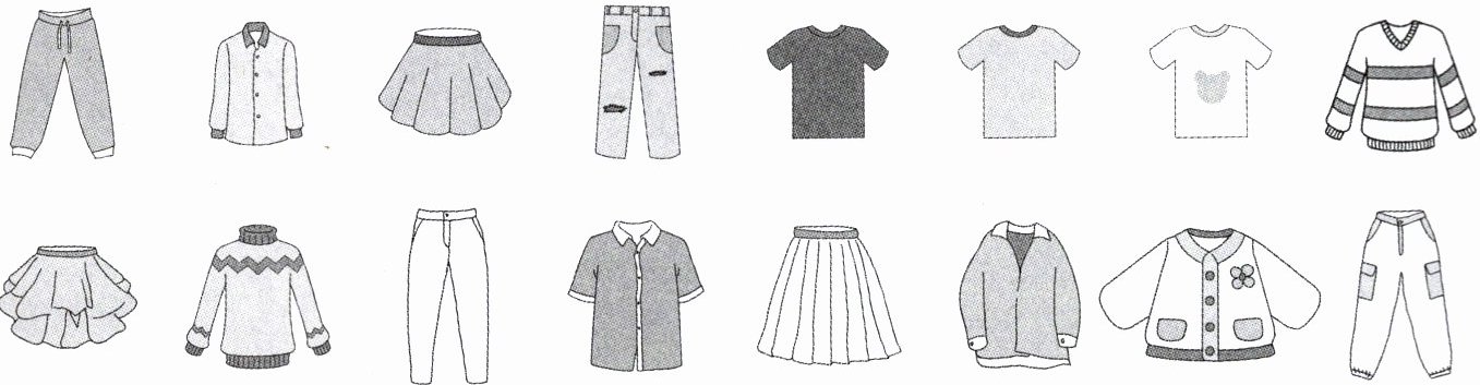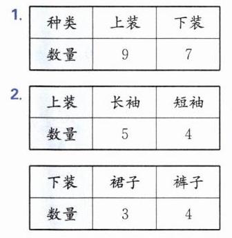 1. 将这些衣服分成两类,可以怎样分? 把分类的结果记录在下表中。