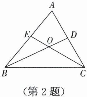 2. 如图,在 $ \triangle ABC $ 中,$ BD $,$ CE $ 是 $ \triangle ABC $ 的角平分线,$ BD $,$ CE $ 相交于点 $ O $,$ \angle ABC = 50^{\circ} $,$ \angle ACB = 60^{\circ} $,则 $ \angle BDC $ 的度数是(