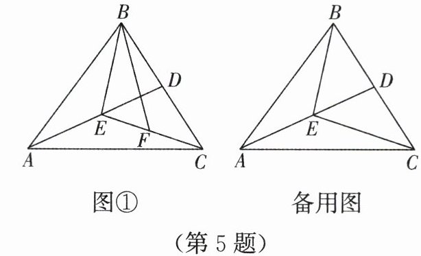 5. 在 $ \triangle ABC $ 中,$ AD $ 是中线,$ E $ 是 $ AD $ 的中点,$ F $ 是线段 $ CE $ 上一点,$ \triangle ABC $ 的面积为 $ 20 $.