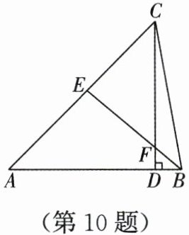10. 如图,在$\triangle ABC$中,$CD是AB$边上的高线,$BE平分\angle ABC$,$BE与CD交于点F$. 若$\angle A = 45^{\circ}$,$\angle ABC = 80^{\circ}$,则$\angle AEB$的度数是