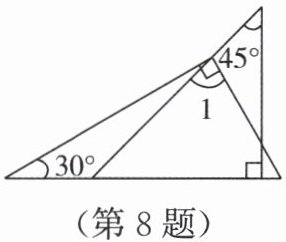 8. 将一副直角三角尺如图叠放在一起,则$\angle 1$的度数是