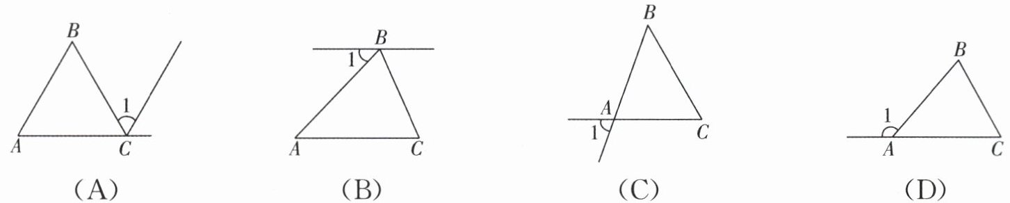 1. 如图,$\angle 1是\triangle ABC$的外角的是(