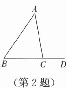 2. 如图,在$\triangle ABC$中,$\angle B = 55^{\circ}$,延长$BC到点D$,$\angle ACD = 100^{\circ}$,则$\angle A$的度数是(
