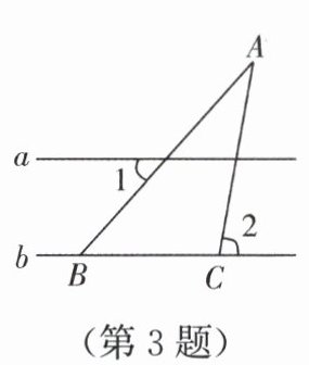 3. 如图,直线$a // b$,$\angle A = 32^{\circ}$,$\angle 1 = 48^{\circ}$,则$\angle 2$的度数是(