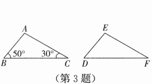 3. 如图,若$\triangle ABC\cong \triangle EDF$,则$\angle E$的度数是(