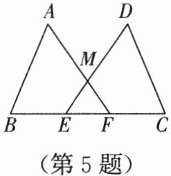 5. 如图,点$E$,$F在线段BC$上,$\triangle ABF与\triangle DCE$全等,点$A与点D$,点$B与点C$分别是对应顶点,$AF与DE交于点M$,则$\angle DCE$的对应角是(