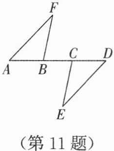 11. 如图,点$A$,$B$,$C$,$D$在同一条直线上,且$\triangle ABF\cong \triangle DCE$,试判断$FB与EC$的关系,并说明理由.