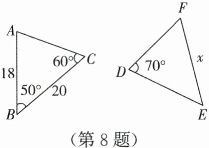8. 如图,$\triangle ABC\cong \triangle DEF$,根据图中的信息,$x= $