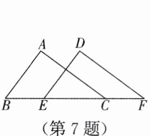 7. (2023,成都,11)如图,已知$\triangle ABC\cong \triangle DEF$,点$B$,$E$,$C$,$F$依次在同一条直线上.若$BC= 8$,$CE= 5$,则$CF$的长为______.