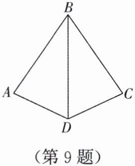 9. 如图,$\triangle ABD\cong \triangle CBD$,若$\angle A= 80^{\circ}$,$\angle ABC= 70^{\circ}$,则$\angle ADC$的度数为