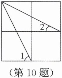 10. 如图,在 $ 2 × 2 $ 的方格纸中,$ \angle 1 + \angle 2 $ 的度数为