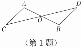 1. 如图,已知 $ AO = BO $,根据“ASA”判定方法,要得到 $ \triangle AOC \cong \triangle BOD $,需增加的一个条件是(