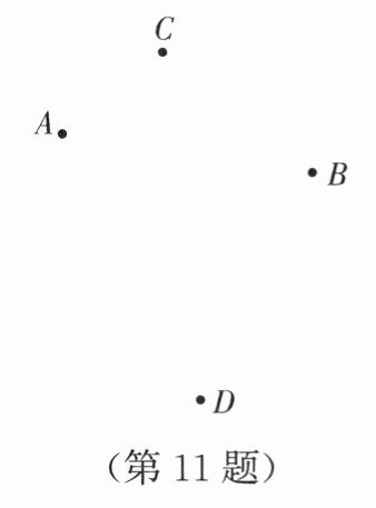 11. 如图,已知平面上$4个点A$,$B$,$C$,$D$,按下列要求画出图形,并回答问题: