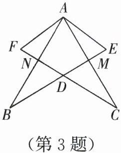 3. 如图,已知∠E = ∠F,∠B = ∠C,BE = CF. 给出下列结论:①AE = AF;②∠EAC = ∠FAB;③△ACN ≌ △ABM;④CD = DN. 其中正确的结论是