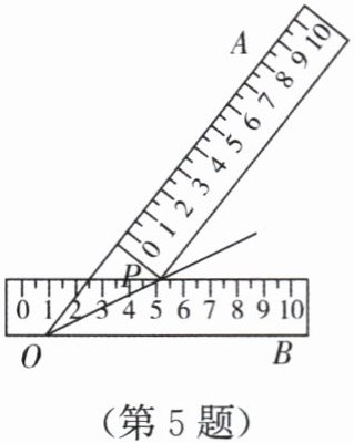 5. 小明同学在学习了全等三角形的相关知识后发现,只用两把完全相同的长方形直尺就可以作出一个角的平分线。如图,一把直尺压住射线OB,另一把直尺压住射线OA,并且与第一把直尺交于点P,小明说:“射线OP就是∠BOA的平分线。”他这样做的依据是(