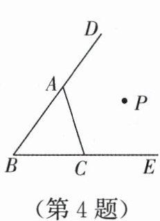 4. 如图,已知点P到BE,BD,AC的距离恰好相等,则点P的位置:①在∠B的平分线上;②在∠DAC的平分线上;③在∠ECA的平分线上;④恰是∠B,∠DAC,∠ECA三个角的平分线的交点。上述结论正确的是(